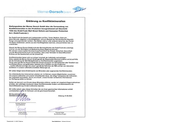Stellungnahme der Werner Dorsch GmbH bezugnehmend auf Abschnitt 1502 des Dodd-Frank Wall Street Reform und Consumer Protection