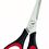 Handgerecht geformter schwarzer Griff aus Kunststoff (PP) mit roten Soft-Einlagen, auf SB-Probierkarte. Länge: 16,0 cm.