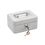 Die Geldkassetten sind aus nahtlos gezogenem Stahl mit Pulverbeschichtung gefertigt und mit einem versenkbaren Tragegriff, einem Münzeinsatz aus Kunststoff mit 4 Fächern und einem Sicherheits-Zylinderschloss mit zwei Schlüsseln ausgestattet. Die Schlüsselnummer ist auf dem Schloss eingraviert.