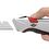 Die federbelastete Trapezklinge zieht sich nach dem Schnitt automatisch zurück (Schieber während des Schneidens nicht festhalten). Das robuste Aluminiumgehäuse mit gummierter Griffzone liegt leicht und sicher in der Hand. Durch die Positionierung des Klingenschiebers auf dem Messerrücken kann der Cutter sowohl von Rechts- als auch von Linkshändern benutzt werden. Leichter Klingenwechsel aus dem integrierten Magazin für 3 Ersatzklingen. TÜV/GS-geprüft. Maße: ca. 16,5 x 2,0 x 4,0 cm, Gewicht: ca. 106 g, Farbe: silber/schwarz/rot. Lieferung in hängfähiger SB-Kartonverpackung mit einer hochwertigen Trapez-Ersatzklinge aus SK5-Carbonstahl im integrierten Magazin.